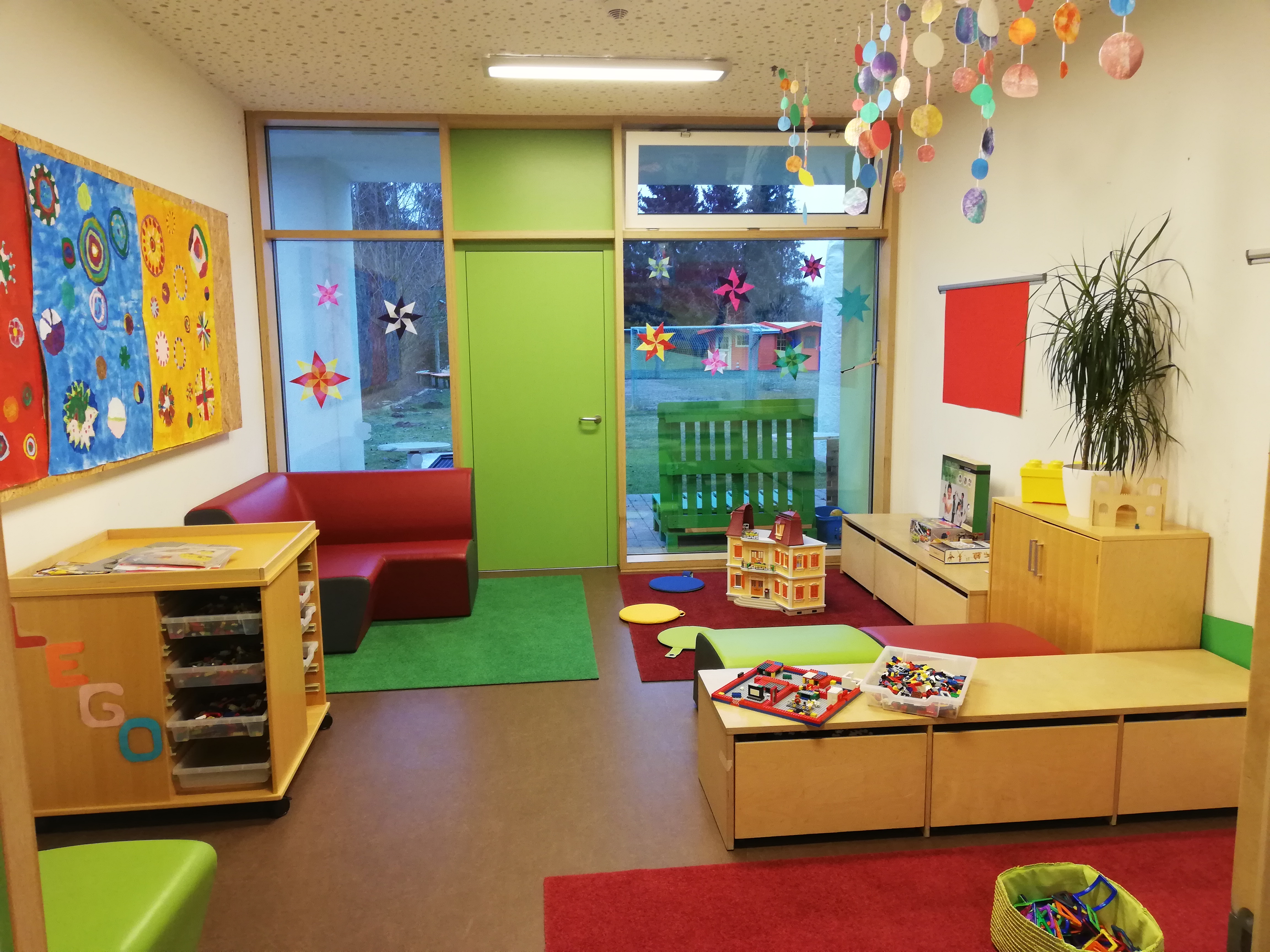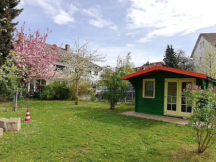 In der Stauffenbergstraße gibt es einen kleinen Garten zum Entspannen, Schaukeln, Klettern und Toben. Die älteren Kinder jederzeit in den großzügigen Garten der Karolingerstraße kommen und dort das Bewegungsangebot nutzen.