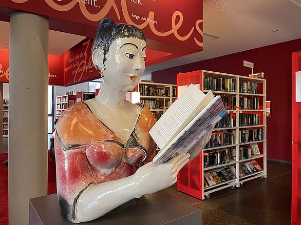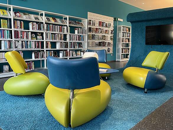 Genießen Sie doch in entspannter Atmosphäre und bei einer Tasse Kaffee im Lesecafé "Wissensdurst" aktuelle Zeitschriften und Tageszeitungen oder besuchen Sie die wechselnden Ausstellungen in der Treppenhausgalerie!
