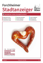 Der Forchheimer Stadtanzeiger ist das Amtsblatt der Großen Kreisstadt Forchheim. Hier informieren wir Sie neben den amtlichen Bekanntmachungen regelmäßig über Wissenswertes und Aktuelles aus der Stadtverwaltung sowie über Veranstaltungstermine der Vereine und Institutionen im Stadtgebiet.